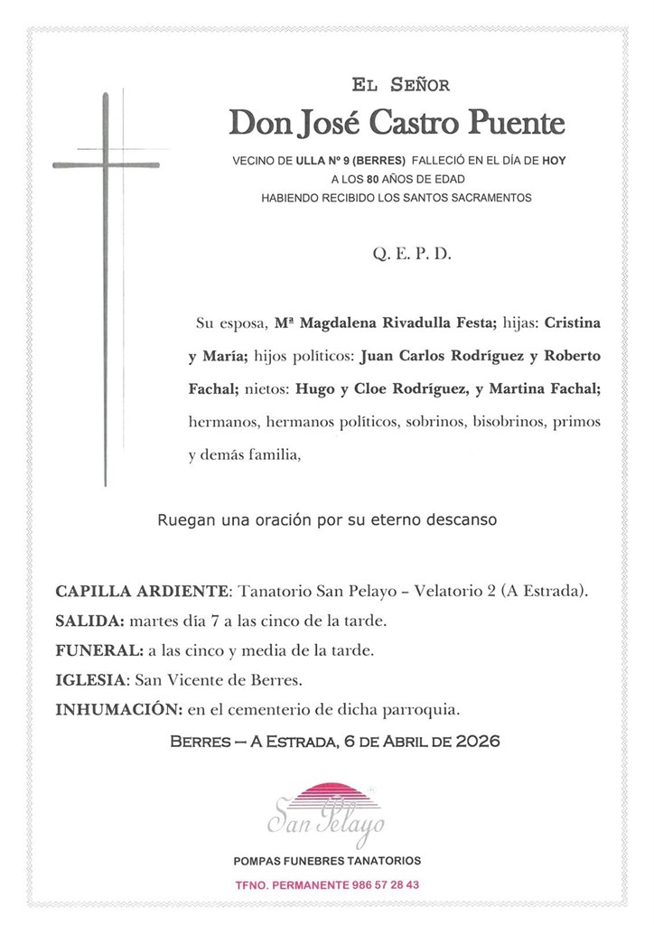 Los inicios de nuestra empresa del sector fúnebre se remontan al año 1992 con José Luis Castro Sanmartín, quien es fundador de la empresa familiar Pompas Fúnebres San Pelayo. La filosofía de nuestra empresa se basa en el respeto hacia todos nuestros clientes, su familia y sus allegados en momentos tan delicados como la pérdida de un ser querido. Además, nuestro equipo profesional destaca por su diligencia y la capacidad de mostrar el máximo respeto.