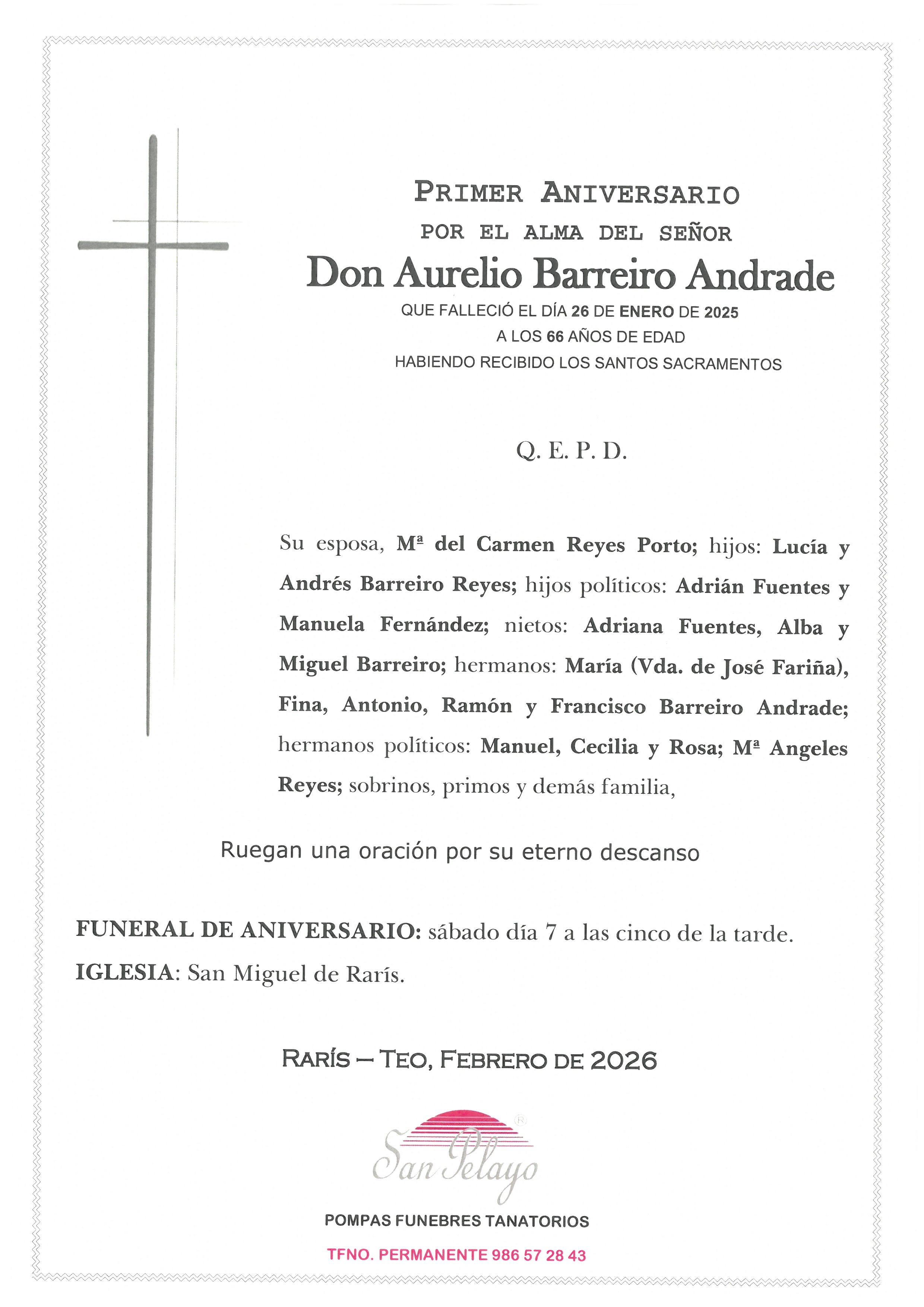 ANIV: AURELIO BARREIRO ANDRADE 07/02/2026