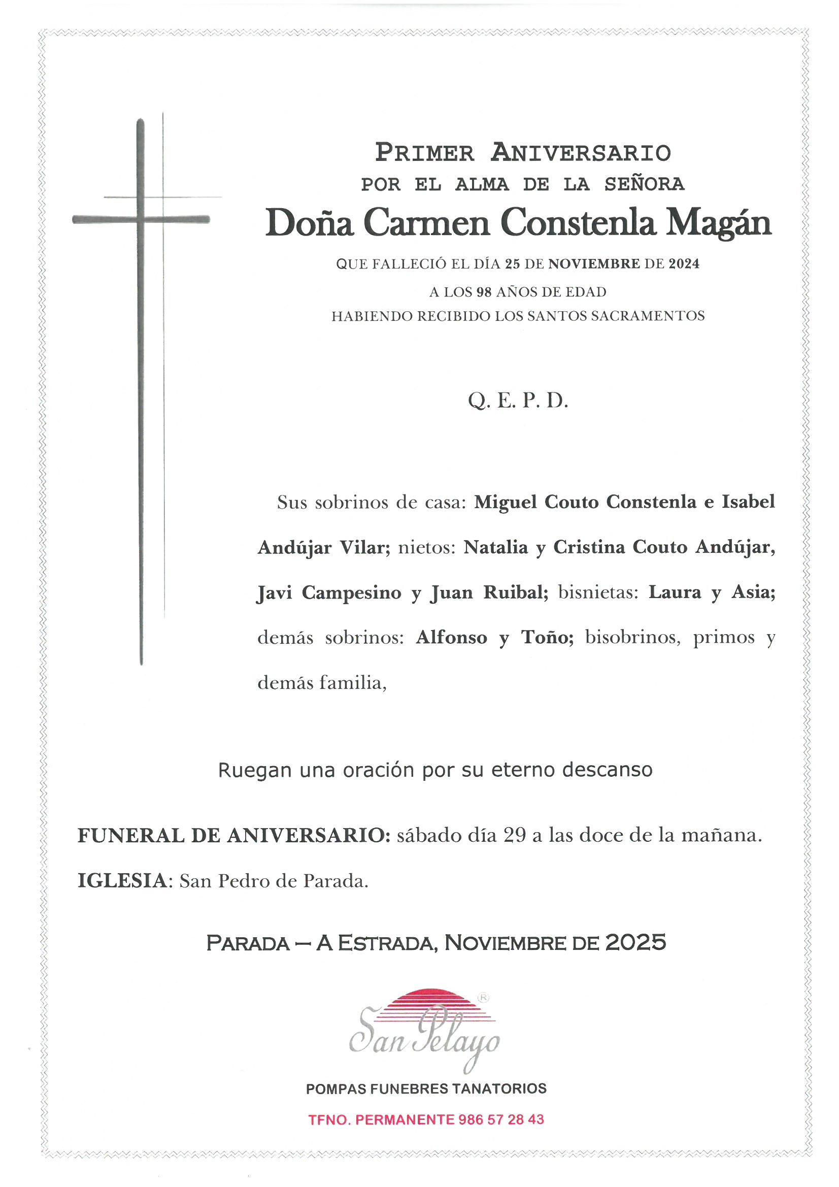 ANIV. CARMEN CONSTENLA MAGAN 29/11/2025