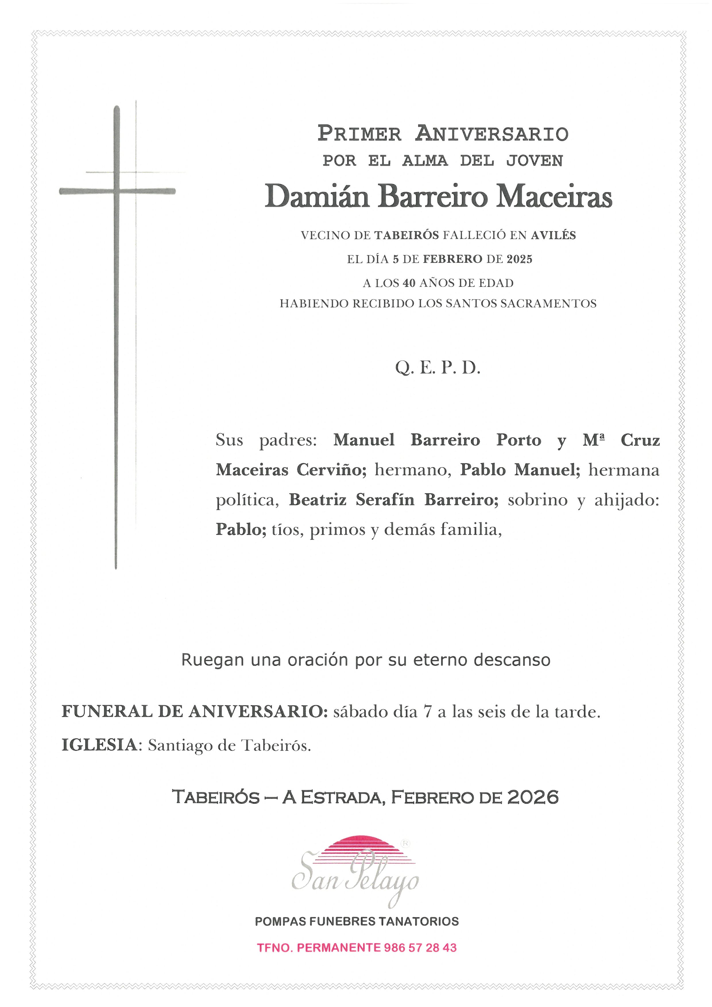 ANIV: DAMIÁN BARREIRO MACEIRAS 07/02/2026