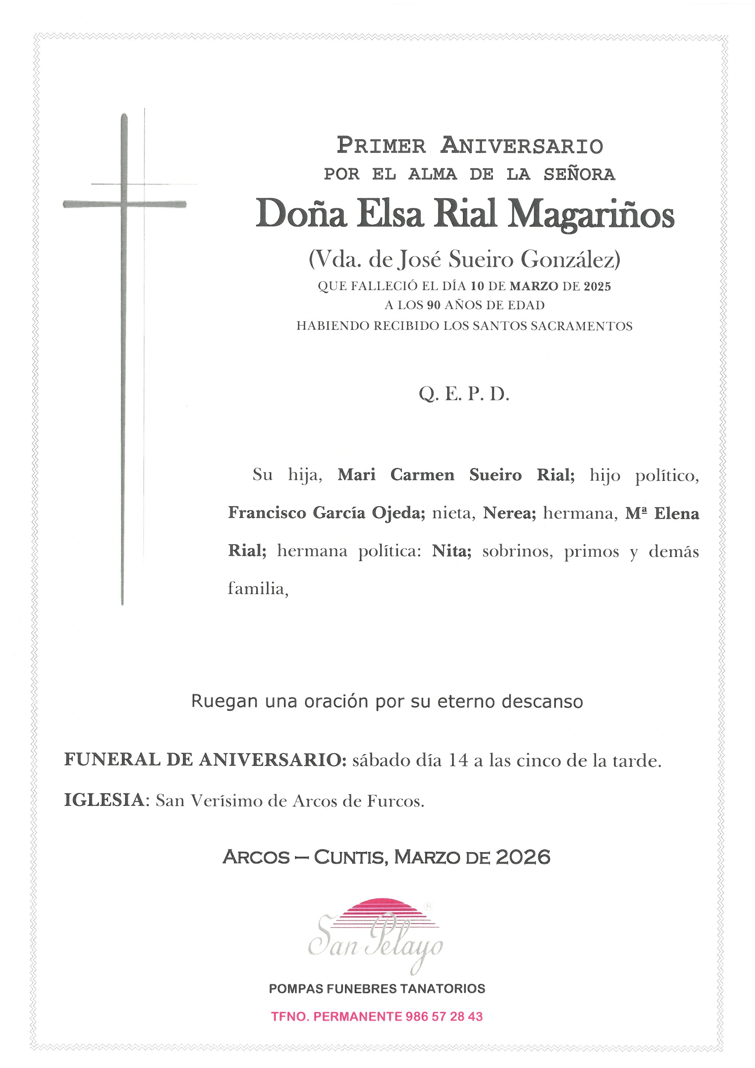 ANIV: ELSA RIAL MAGARIÑOS 14/03/2026