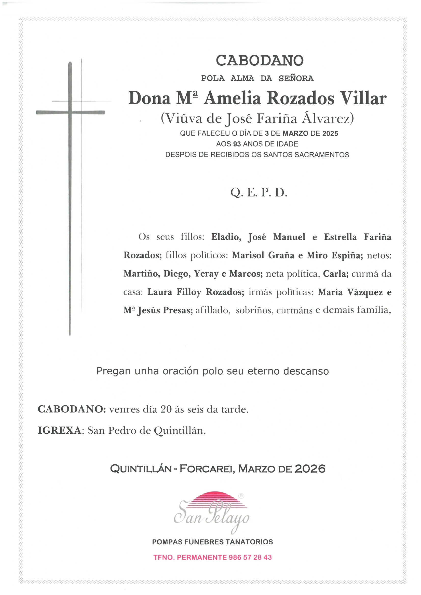 ANIV. Mª AMELIA ROZADOS VILLAR 20/03/2026