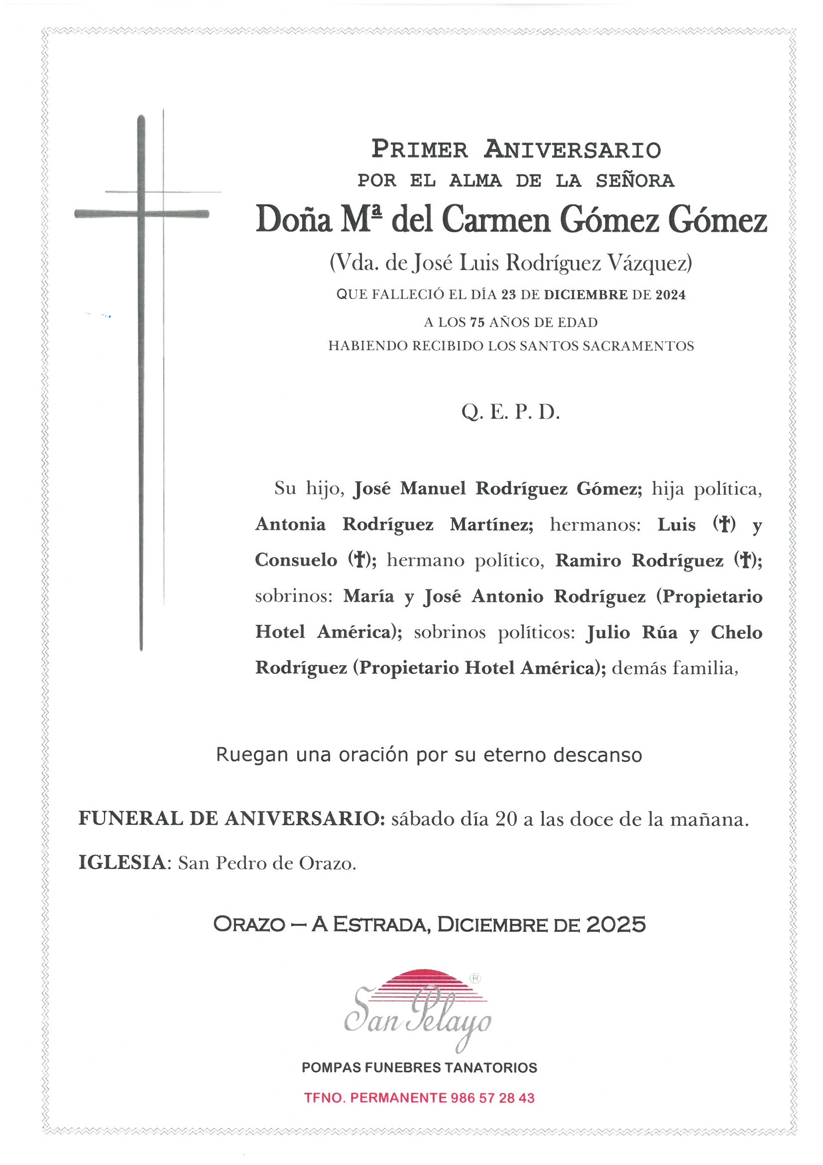 ANIV. Mª DEL CARMEN GOMEZ GOMEZ 20/12/2025