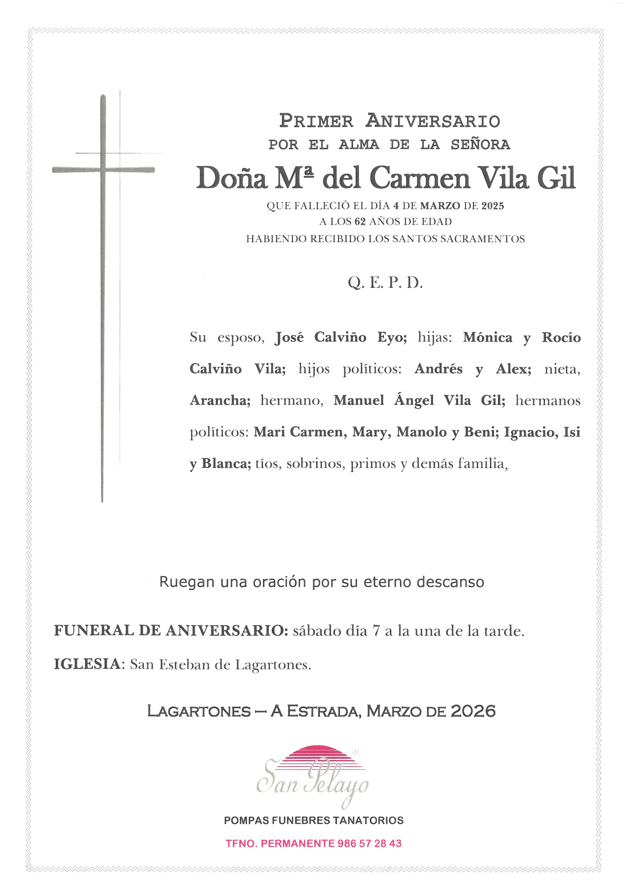 ANIV. Mª DEL CARMEN VILA GIL 7/03/2026