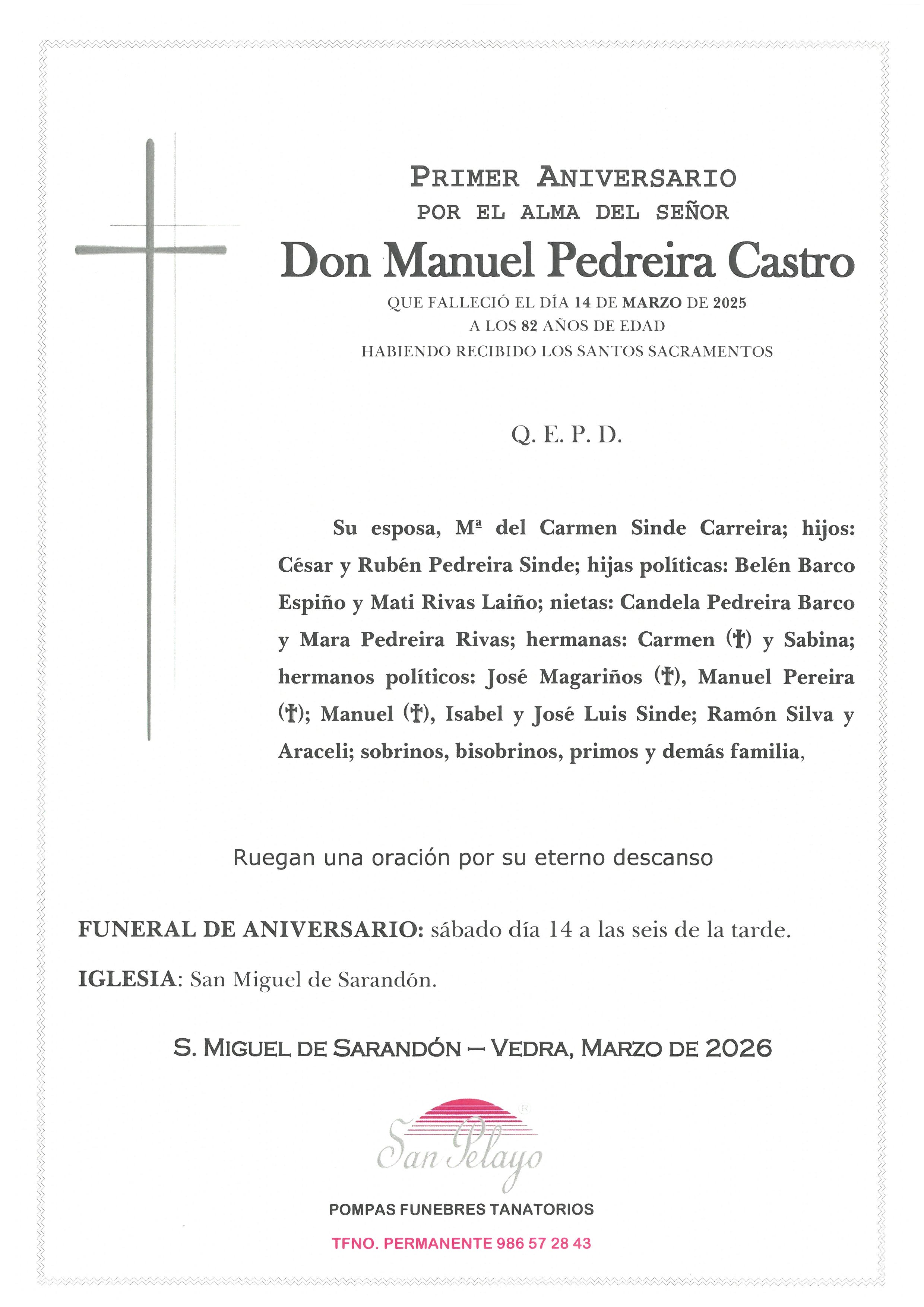 ANIV: MANUEL PEDREIRA CASTRO 14/03/2026
