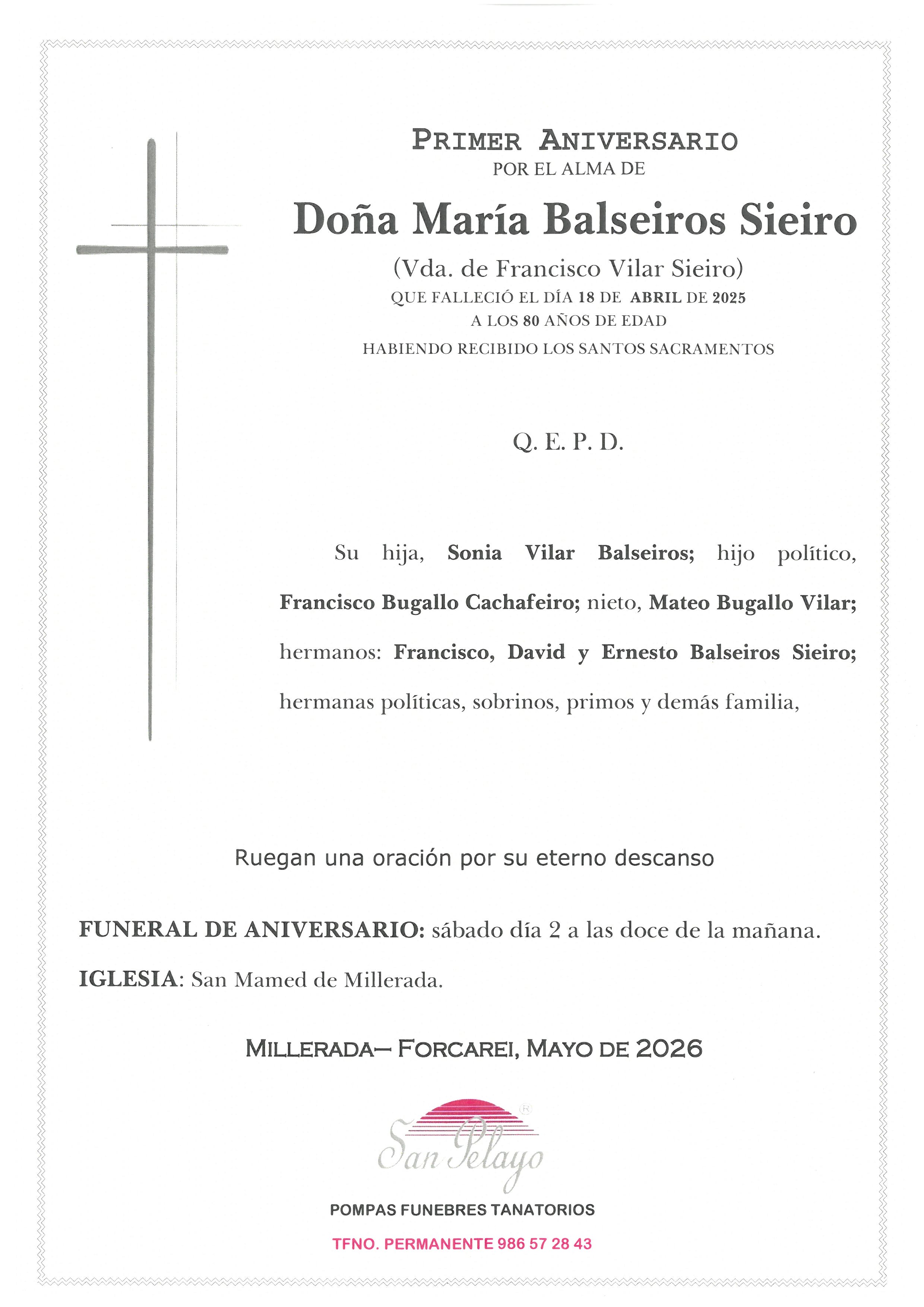 ANIV. MARIA BALSEIROS SIEIRO 2/05/2026