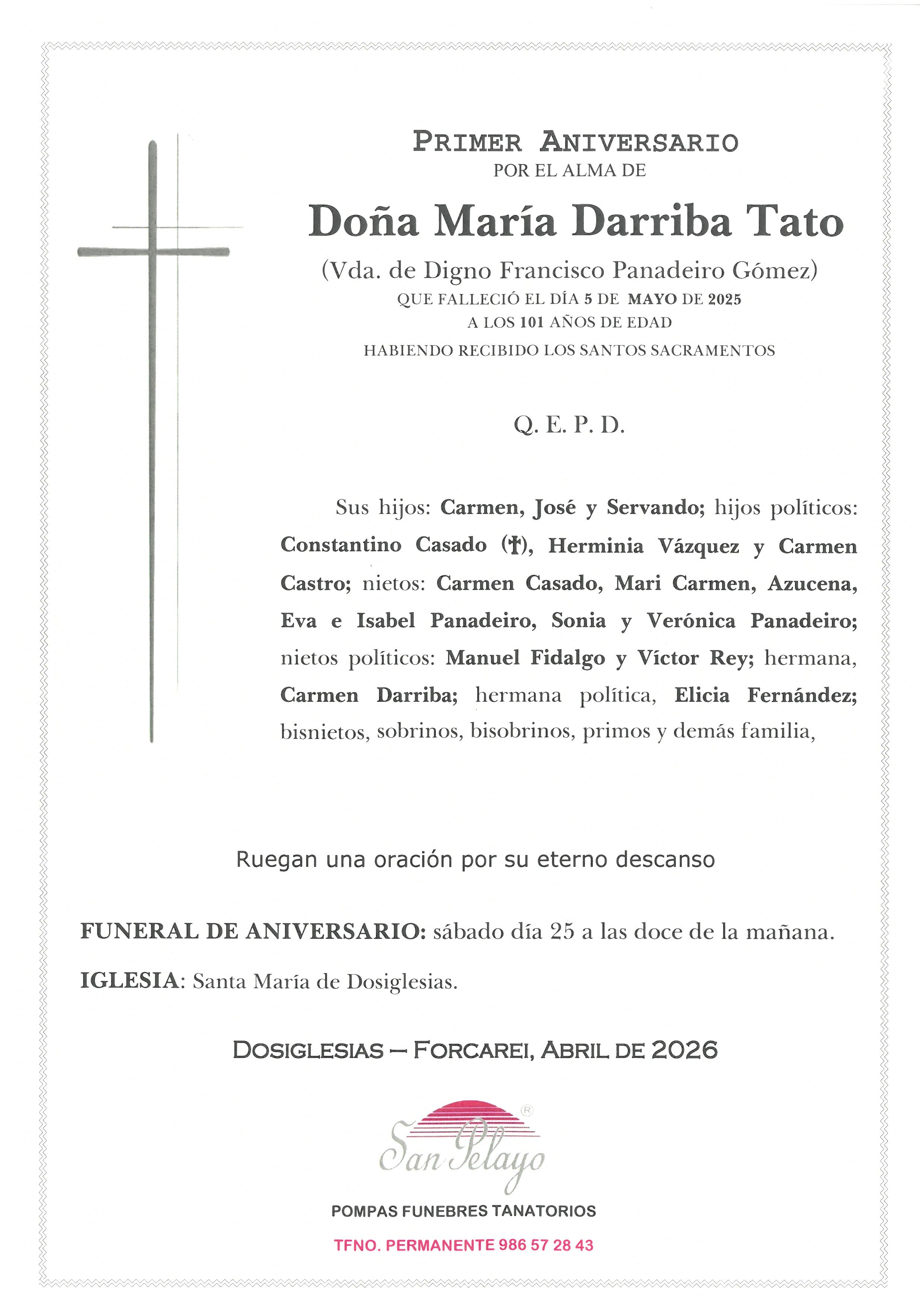 ANIV. MARIA DARRIBA TATO 25/04/2026