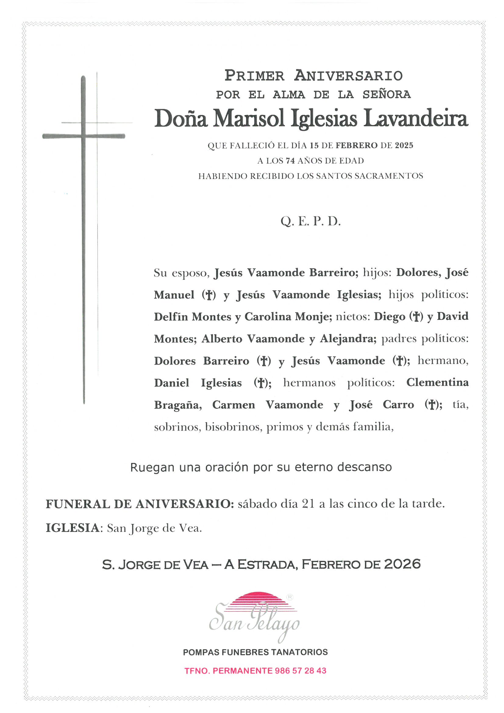 ANIV. MARISOL IGLESIAS LAVANDEIRA 21/02/2026