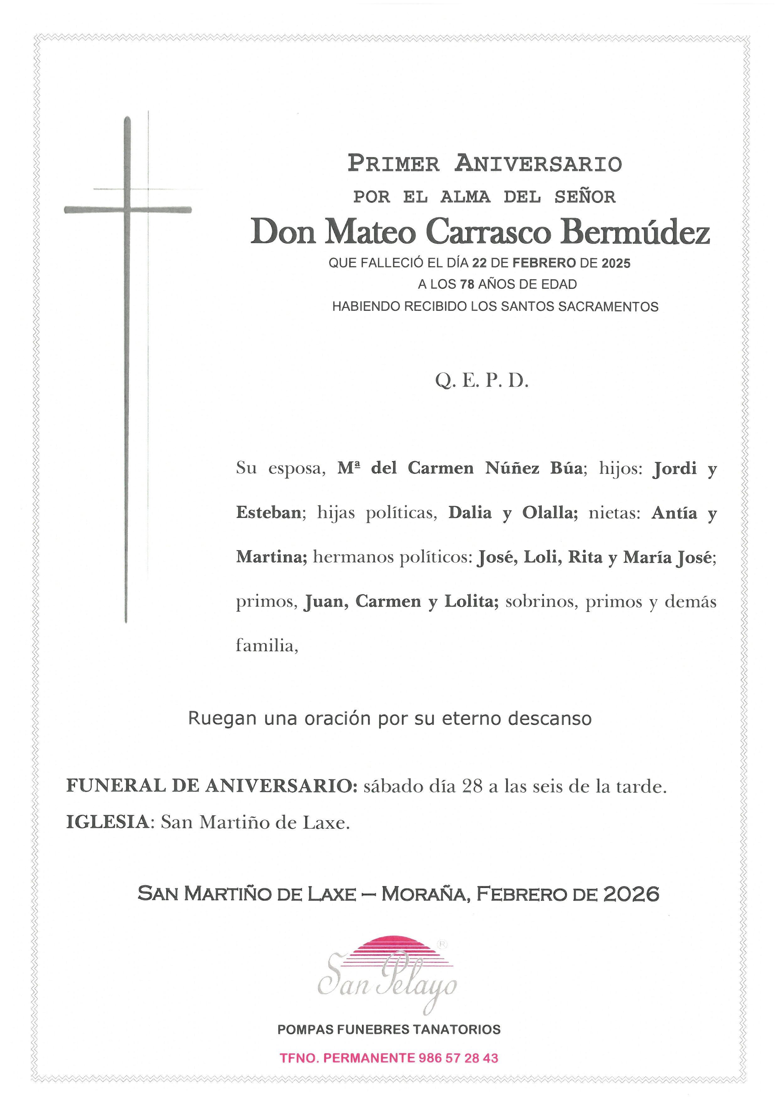 ANIV. MATEO CARRASCO BERMUDE 28/2/2026