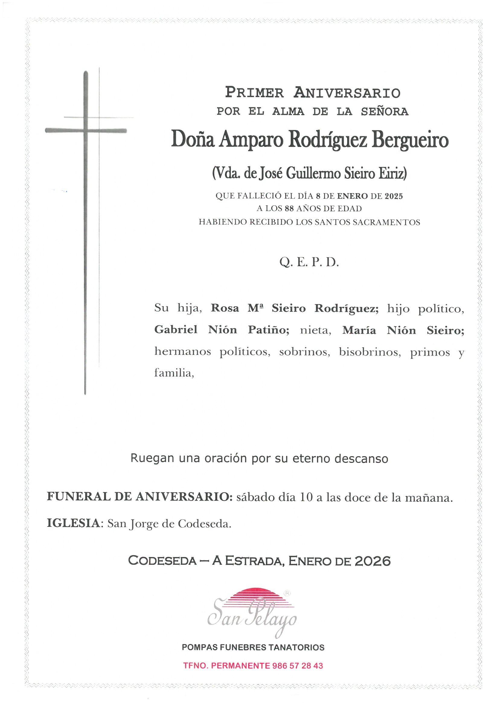 ANIVERSARIO AMPARO RODRÍGUEZ BERGUEIRO 10/01/2026 12:00 HORAS