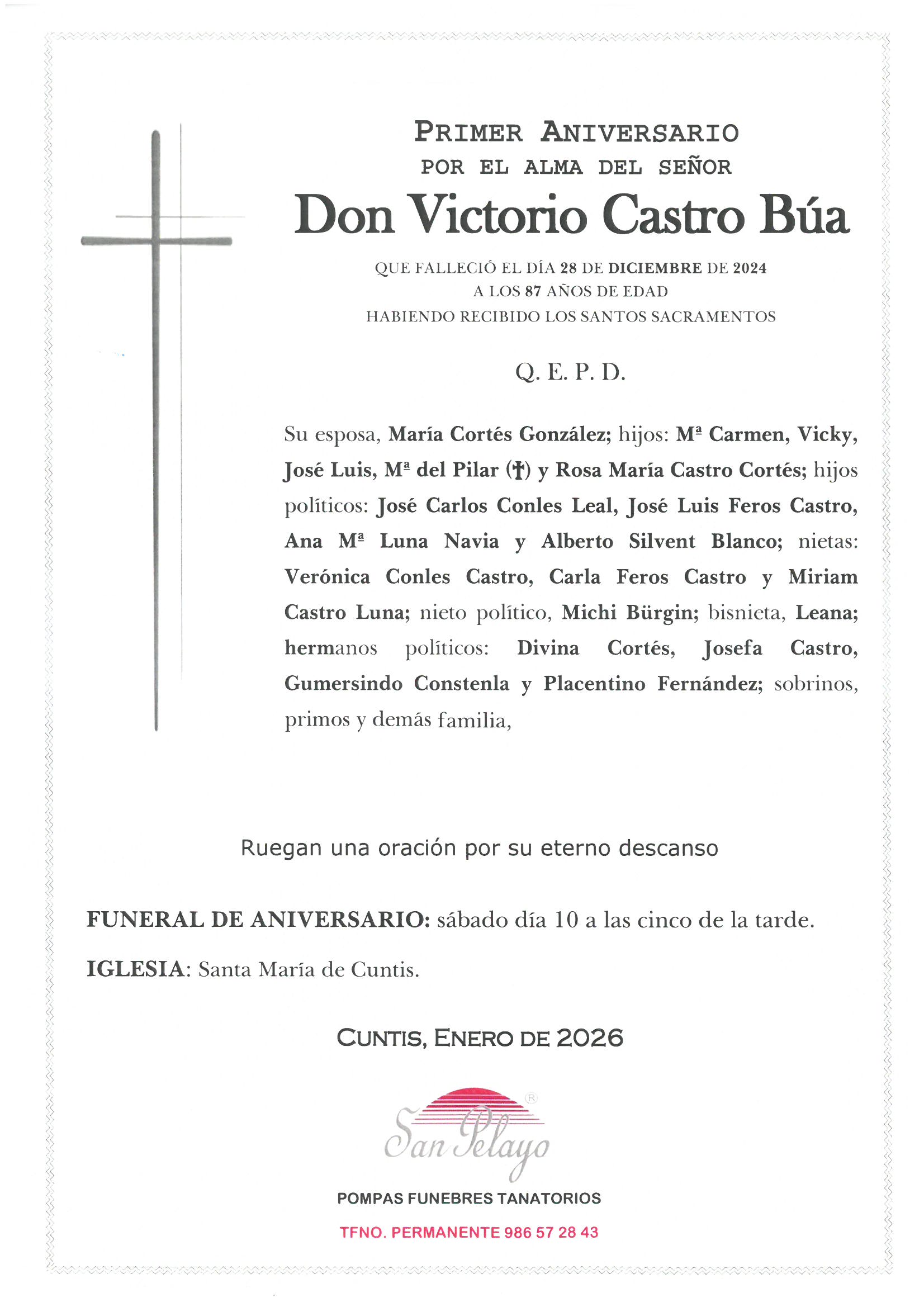 ANIVERSARIO VICTORIO CASTRO BÚA, 10/01/2026 17:00 HORAS